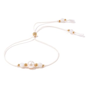 Biała bransoletka z kamieniem księżycowym i perłą na białej nici jedwabnej. Elementem przełamującym biel bransoletki są złote kuleczki ze stali szlachetnej, dodające jej elegancji i klasy. Do regulacji długości bransoletki służy wygodny stoper, z pomocą którego można dowolnie regulować jej długość.