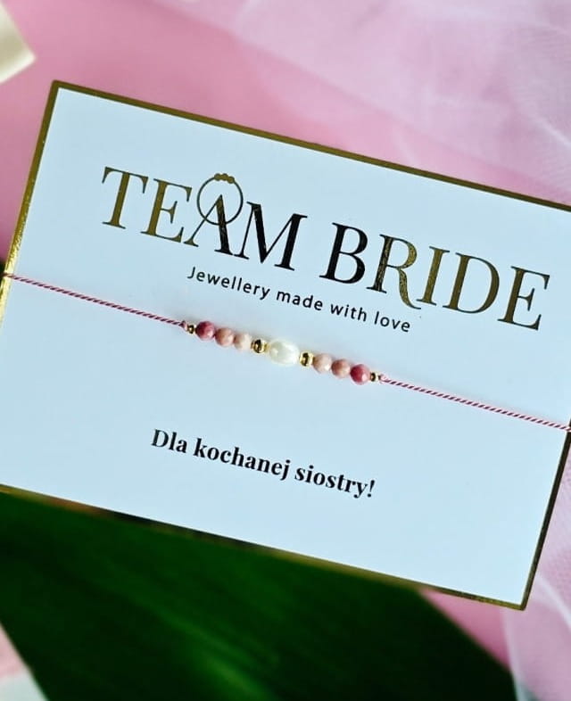 Delikatna i bardzo kobieca kolorystyka bransoletki jest ponadczasowa i uniwersalna. Doskonale pasuje jako prezent na wieczór panieński, gdzie siła kobiecości w postaci Team Bride pokazuje pełnię swoich możliwości.