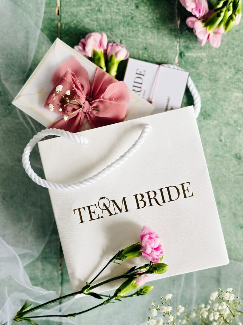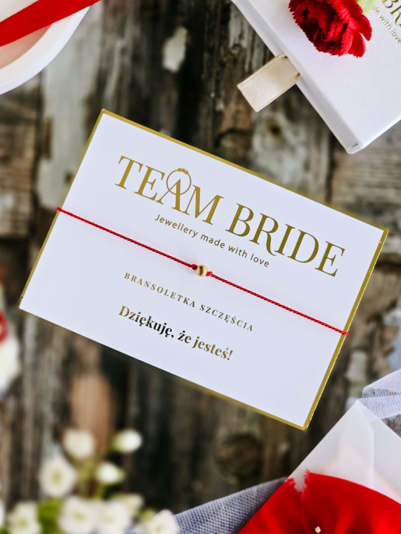 Czerwona bransoletka szczęścia – podziękowanie dla druhen na wieczór panieński, Team Bride