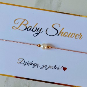 Podziękowania na Baby Shower mogą być wyjątkowe i pełne elegancji dzięki naszej bransoletce z perełką muszlową. Ta minimalistyczna bransoletka, będąca imitacją perły naturalnej, stanowi oryginalny prezent i pamiątkę dla każdej dziewczyny biorącej udział w tej wyjątkowej okazji.