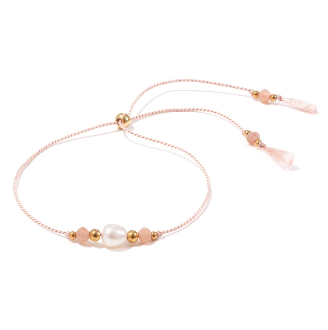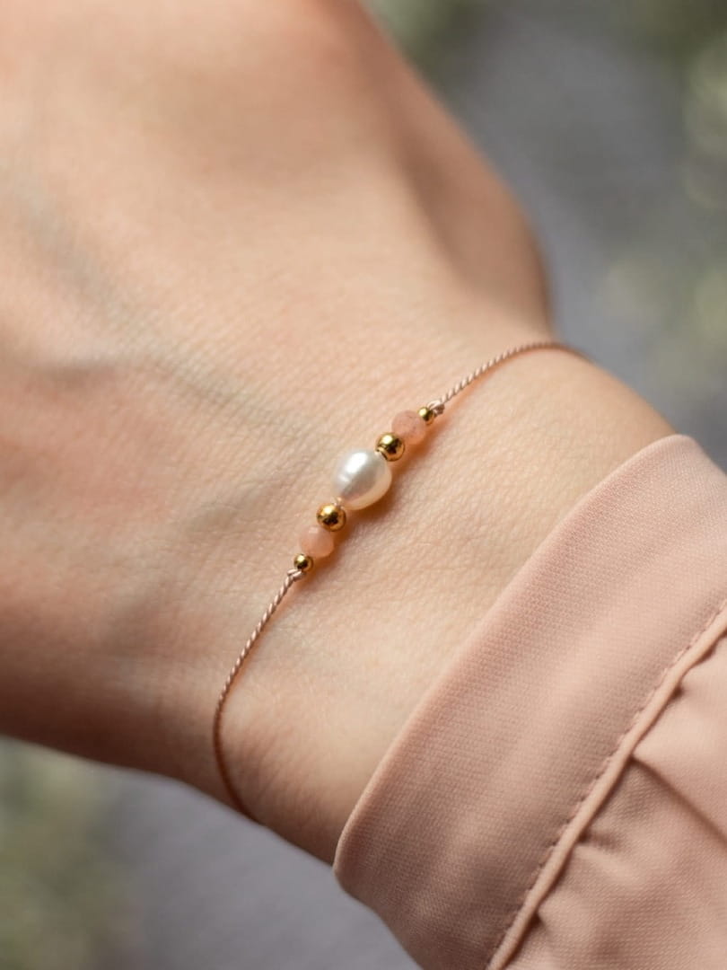 Subtelna bransoletka na panieński z kamieniem słonecznym i perłą - Shine Nude 1